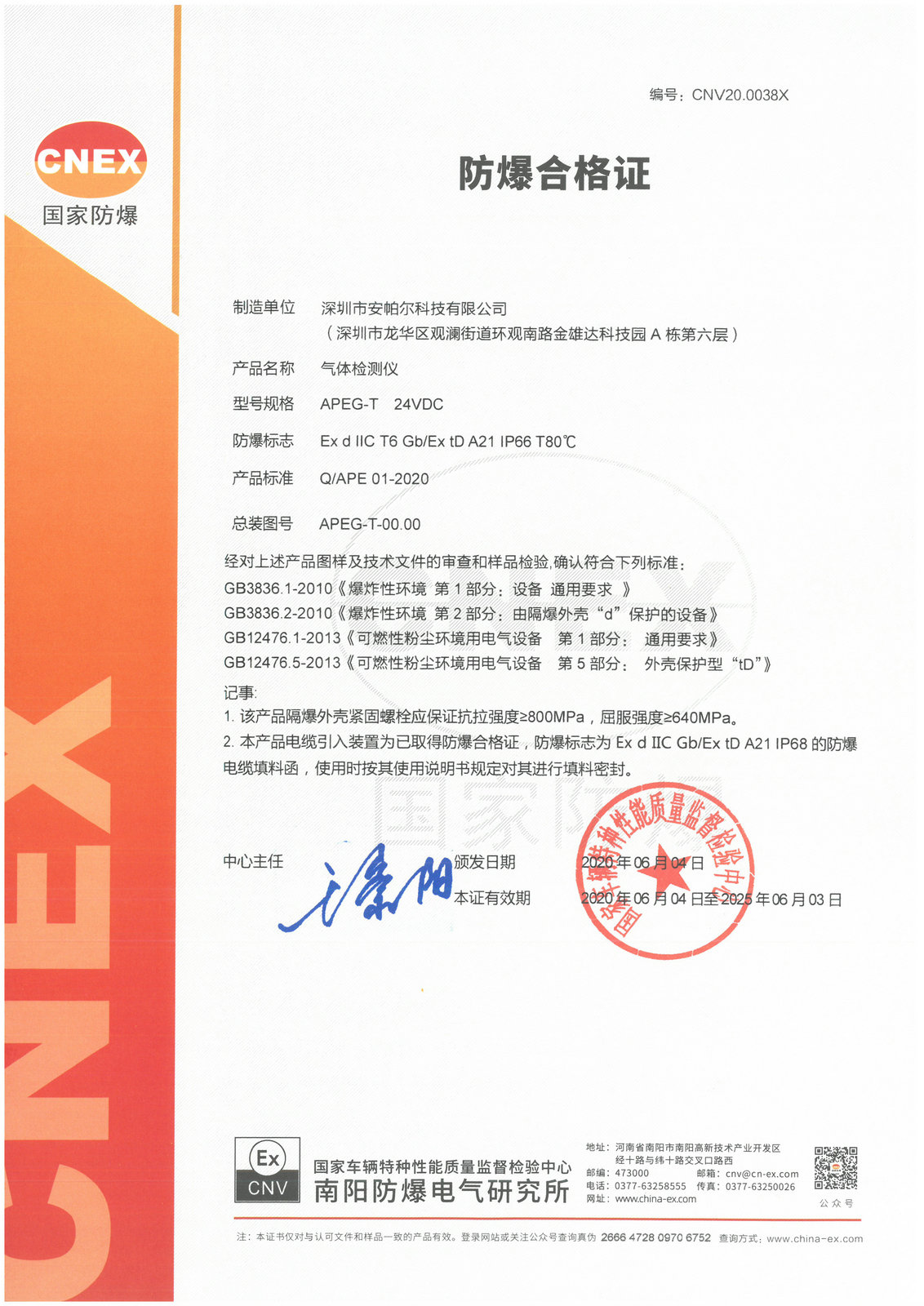 APEG-D 防爆合格證