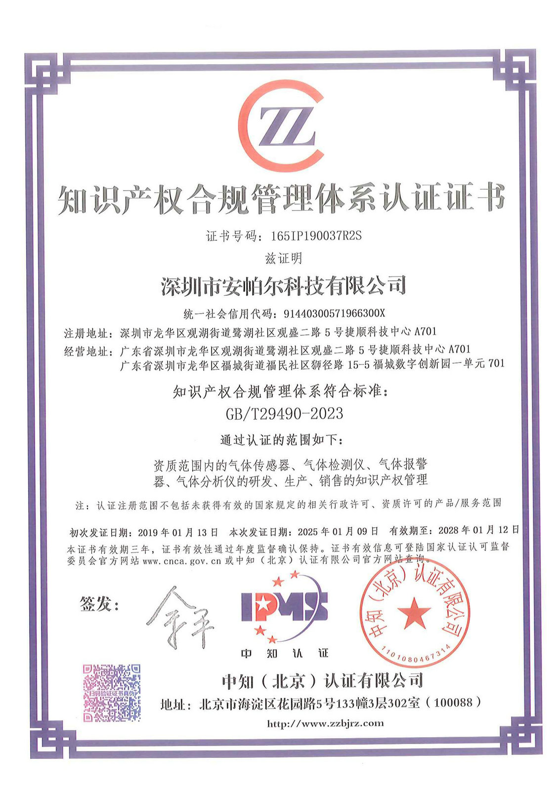 知識產權合規管理體系認證證書